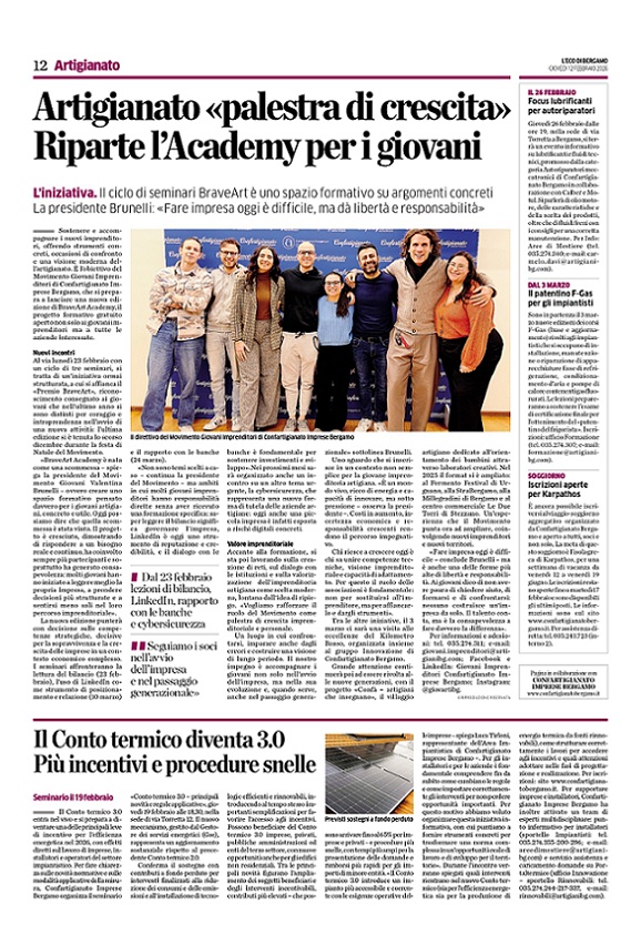 Movimento Giovani e seminario “Conto Termico 3.0” su L’Eco di Bergamo del 12 febbraio