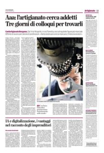 Su L’Eco di Bergamo del 26 marzo i “Job Days” per aiutare le imprese a trovare personale, e la serata “IA al Quadrato”